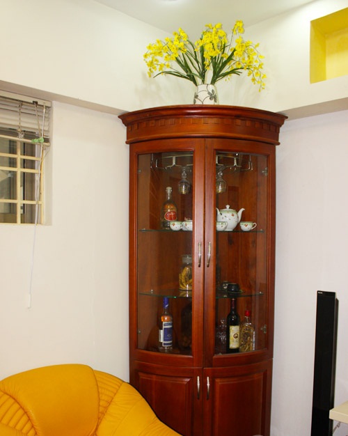 Những tủ rượu góc bằng gỗ ở phòng khách được nhiều chuyên gia phong thủy khuyên dùng. Bày trí bên cạnh kệ tivi phòng khách, làm nổi bật không gian phòng khách nhà bạn.
